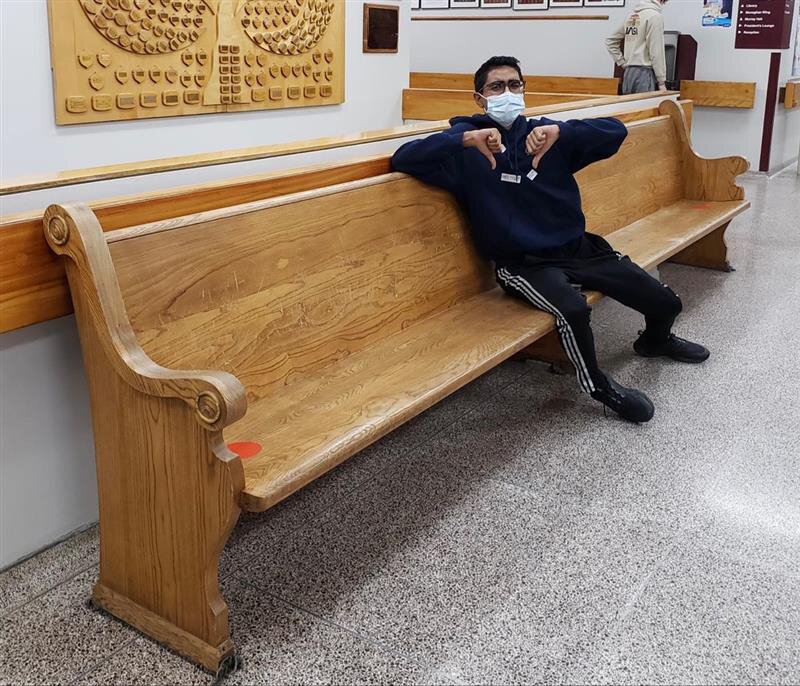 9. Hallway benches: There are benches placed about the school which students can use in between classes (but only three people as indicated by the distancing stickers). However, I believe that the hallway benches are the worst places to be during spare. The only thing you can do is sit on your phone. Eating is a hassle because there are no tables and doing last-minute homework is a nightmare for your back. It’s an awful place to be.