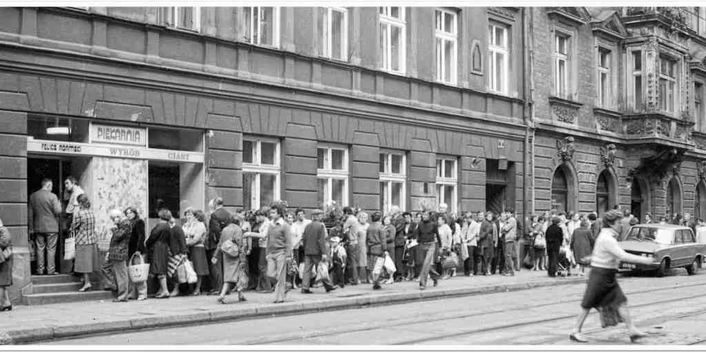 In Poland, the problem for most people was not money but the fact that there was nothing to buy. My grandfather told me how he stood in lines that stretched blocks for food. He would wait in line, hungry, until his work shift started and then would ask someone in line to hold his spot for him. On his days off, he would return the favour. My grandfather was not the only one in the family who stood in lines to help get food for the family. My mother, who was only eleven years old at the time, often missed two to three hours of school to buy butter or other household items. The deal between teachers and students was that students would provide a small amount of what they stood in line for to the teacher, almost as a tax for an excused absence. This, unbelievably, was commonplace in Poland and not seen as a bribe but as a justified exchange—a way to help each other. Often, students would have to take two sets of class notes: one for the student in line and one for themselves.