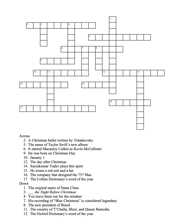 By Isaac Lavitt '22 Look through our various articles to find the answers! christmas-crosswordDownload christmas-crossword-keyDownload